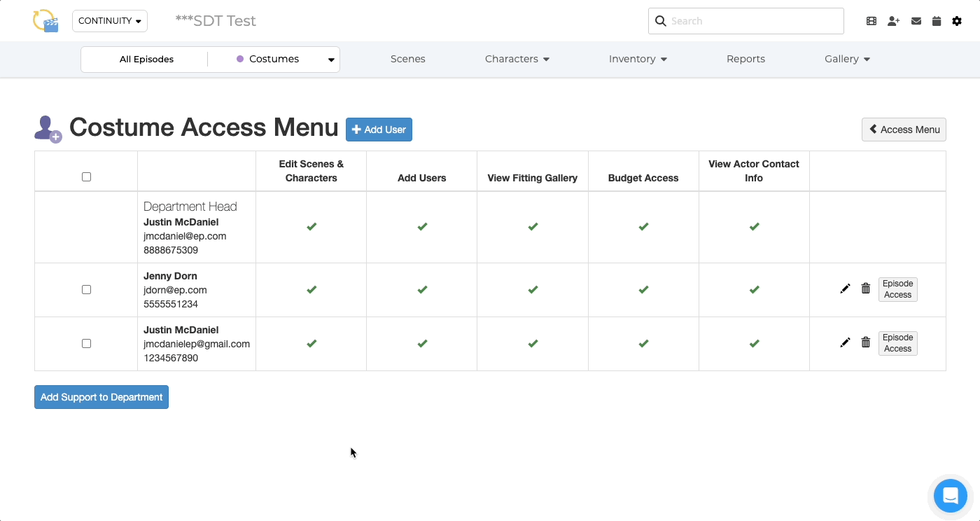 - If working on a Traditional Episodic production, set the user's episode access, then click Save or the Plus (+) Button to save and add another user.